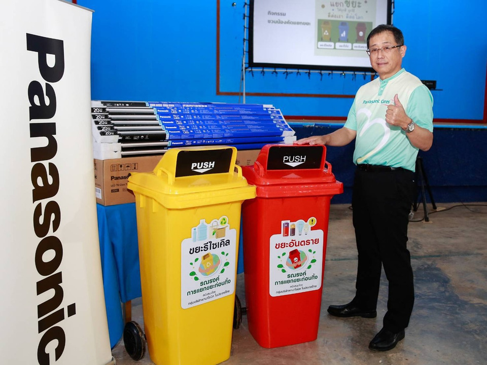ล่าสุด กลุ่มบริษัทพานาโซนิคในประเทศไทย ร่วมกับ บริษัท เสียงโตเกียว จำกัด สานต่อกิจกรรม “พานาโซนิค ชวนแยกขยะ ลดมลภาวะในชุมชน” ลงพื้นที่จังหวัดชุมพร เพื่อสร้างจิตสำนึกด้านสิ่งแวดล้อมอย่างยั่งยืน โดยมี นายฮิเดคาสึ อิโตะ ซีอีโอ กลุ่มบริษัทพานาโซนิค ในประเทศไทย นำทีมพนักงานมอบชุดถังขยะแยกประเภท พร้อมหลอดไฟพานาโซนิค แอลอีดี ประหยัดพลังงาน จำนวน 100 หลอด ให้แก่โรงเรียนปากน้ำชุมพรวิทยา จังหวัดชุมพร เพื่อสนับสนุนการจัดการขยะอย่างถูกวิธี และเสริมสร้างสภาพแวดล้อมที่เอื้อต่อการเรียนรู้ ซึ่งมีนางสาวปวีณา นาคหกวิค ผู้อำนวยการ โรงเรียนปากน้ำชุมพรวิทยา เป็นผู้รับมอบ และ นายเอกพงษ์ เตชะวงศ์ถาวร กรรมการผู้จัดการ บริษัท เสียงโตเกียว จำกัด ร่วมเป็นสักขีพยาน
