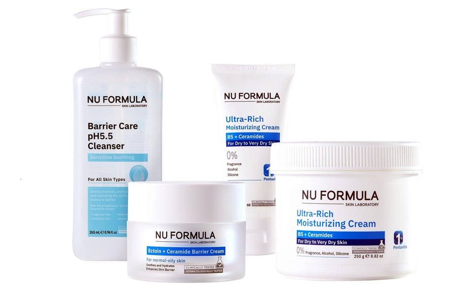 - NU FORMULA Ultra-Rich Moisturizing Cream B5 + Ceramide ขนาด 65 และ 250 กรัม ราคาปกติ 390 บาท และ 690 บาท