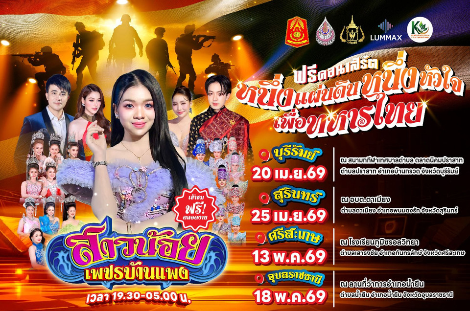 นอกจากไฮไลท์การแสดงดนตรีจากคณะหมอลำวง สาวน้อยเพชรบ้านแพง แล้ว ยังมีกิจกรรมการกล่าวสดุดีทหารกล้า จัดอาหารเครื่องดื่มฟรีให้กับทหาร และกิจกรรมสร้างสรรค์ต่าง ๆ เพื่อส่งต่อกำลังใจจากแนวหลังสู่แนวหน้า ภายใต้แนวคิด “หนึ่งแผ่นดิน หนึ่งหัวใจ เพื่อทหารไทย” โดยงานจะจัดขึ้นด้วยกัน 4 ครั้ง คือ ครั้งที่ 1 วันจันทร์ที่ 20 เมษายน 2569 ณ สนามกีฬาเทศบาลตำบลตลาดนิคมปราสาท ตำบลปราสาท อำเภอบ้านกรวด จังหวัดบุรีรัมย์ , ครั้งที่ 2 วันเสาร์ที่ 25 เมษายน 2569 ณ อบต.ตาเมียง ตำบลตาเมียง อำเภอพนมดงรัก จังหวัดสุรินทร์ , ครั้งที่ 3 วันพุธที่ 13 พฤษภาคม 2569 ณ โรงเรียนภูมิซรอลวิทยา ตำบลเสาธงชัย อำเภอกันทรลักษ์ จังหวัดศรีสะเกษ และ ครั้งที่ 4 วันจันทร์ที่ 18 พฤษภาคม 2569 ณ ลานที่ว่าการอำเภอน้ำยืน ตำบลน้ำยืน อำเภอน้ำยืน จังหวัดอุบลราชธานี