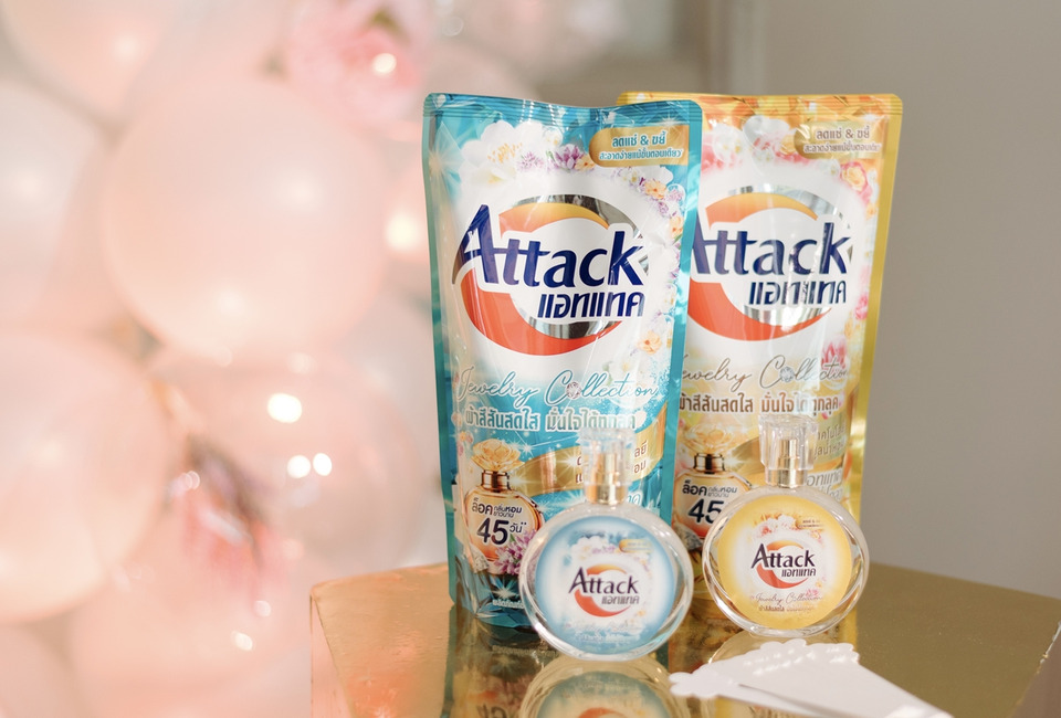 สำหรับ “แอทแทค จิวเวลรี คอลเลกชัน” นับว่าเป็นนวัตกรรมตอบโจทย์ “Confidence Every Move” ของคนเมือง ที่พัฒนาขึ้นจากอินไซต์ผู้บริโภคผสานความเชี่ยวชาญด้านนวัตกรรมของคาโอ ด้วยเทคโนโลยี Jewel Boost Agent ที่ช่วยขจัดความหมอง ให้ผ้าสว่างสดใสเปล่งประกายดุจจิวเวลรี พร้อมเทคโนโลยี แคปซูลน้ำหอม ที่ช่วยล็อกกลิ่นหอมหรูเหนือระดับยาวนานสูงสุดถึง 45 วัน กระจายกลิ่นหอมทุกครั้งที่ขยับ ตอบโจทย์ไลฟ์สไตล์คนเมืองที่ต้องการความมั่นใจยาวนานโดยไม่เพิ่มขั้นตอนในการซัก