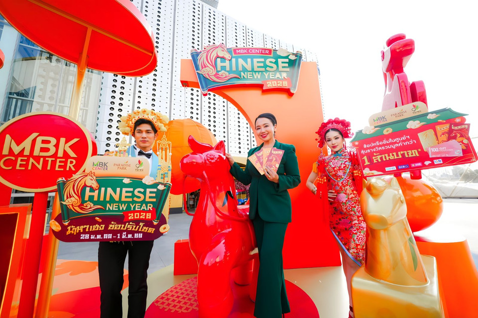 นางสาวพุทธชาด ศรีนิศากร ประธานเจ้าหน้าที่บริหารสายการตลาด บริษัท เอ็ม บี เค จำกัด (มหาชน) ร่วมฉลองเทศกาลตรุษจีนสุดยิ่งใหญ่ CHINESE NEW YEAR 2026 โดยศูนย์การค้าเครือเอ็ม บี เค ได้แก่ เอ็ม บี เค เซ็นเตอร์ พาราไดซ์ พาร์ค และเดอะไนน์ เซ็นเตอร์ พระราม 9 ชวนลุ้นรางวัลกว่า 1 ล้านบาท กับแคมเปญ CHINESE NEW YEAR 2026 "ม้าหาเฮง ช้อปรับโชค” ท่ามกลางบรรยากาศการตกแต่งของทุกศูนย์การค้าฯ ที่เต็มไปความเป็นสิริมงคล โดยเฉพาะจุดเช็คอินที่เป็น “ม้า” ทั้งหมด 8 ตัว ชาวจีนถือว่าเลข 8 เป็นเลขมงคล เลขแห่งความร่ำรวยสมบูรณ์มั่งคั่งแบบอินฟินิตี้ รวมถึงอักษรภาษาจีน “ฟู๋” ที่แปลว่า ความโชคดี ทั้งหมดมาในโทนสีแดง ส้มและทอง ปีนี้สุดพิเศษเพราะนอกจากจะตื่นตากับจุดเช็คอินแล้ว ยังได้สัมผัสกลิ่นหอมอ่อนๆ ของ “ส้ม” ผลไม้มงคล ที่ทำให้ผู้ที่เดินผ่านรู้สึกสดชื่น ผ่อนคลายมีความสุข เรียกว่ามาถ่ายรูปสวยแล้ว ยังเสริมความปังกับความหมายดี ๆ ที่เป็นมงคลกับตัวเองอีกด้วย พิเศษสำหรับสมาชิก MBK PLUS ช้อปปั๊บ รับทรัพย์ปุ๊บ ลุ้นทอง และเครดิตเงินคืนจากบัตรเครดิตที่ร่วมรายการสูงสุด 18%* ตั้งแต่วันนี้ - วันอาทิตย์ที่ 1 มีนาคม 2569