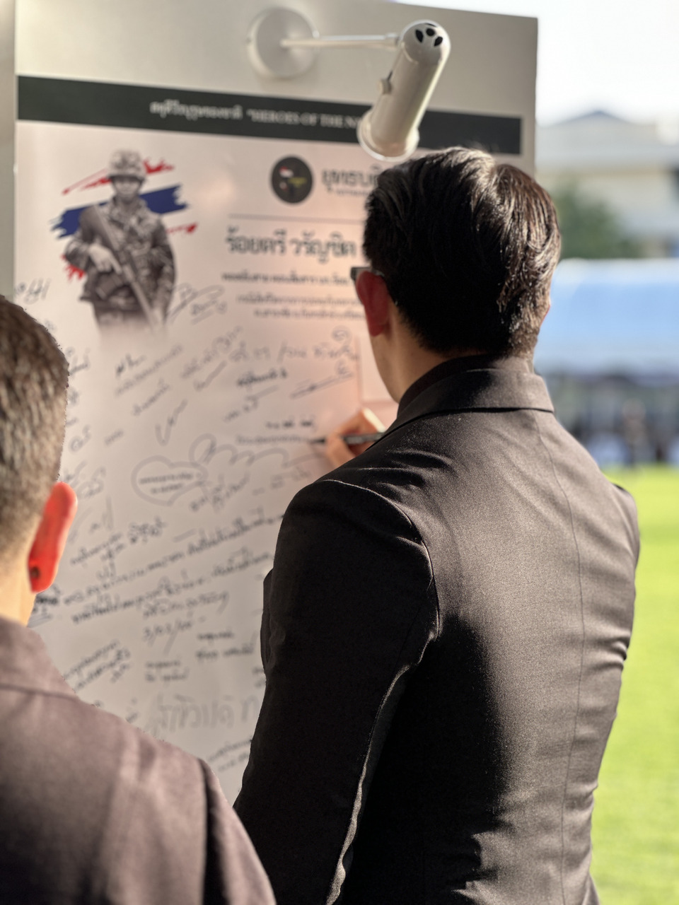 “ผมรู้สึกซาบซึ้งและเคารพในความเสียสละของทหารทุกท่านที่ปกป้องประเทศชาติ วันนี้ตั้งใจพาคุณแม่และพนักงานที่บริษัทมาร่วมรำลึกวีรชนทหารกล้า เพราะอยากให้เราไม่ลืมคุณงามความดีของวีรชนเหล่านี้ สิ่งที่พวกเขาทำคือความกล้าหาญที่คนไทยทุกคนควรจดจำและส่งต่อความกตัญญูเสมอครับ” อั้ม อธิชาติ กล่าว