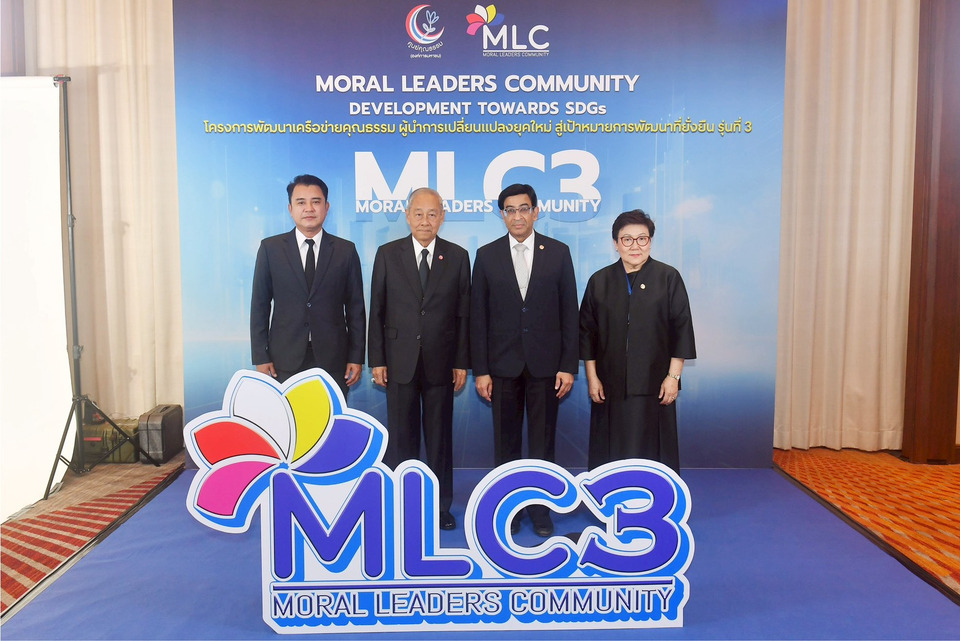 ศูนย์คุณธรรม (องค์การมหาชน) โดยสถาบันวิทยาการคุณธรรม (Moral Academy) จัดโครงการ “พัฒนาเครือข่ายคุณธรรมผู้นำการเปลี่ยนแปลงยุคใหม่ สู่เป้าหมายการพัฒนาที่ยั่งยืน รุ่นที่ 3 (Moral Leaders Community Development towards SDGs : MLC3)” ภายใต้แนวคิด “ผู้นำคุณธรรมพลังขับเคลื่อนสังคมสู่ความยั่งยืน (Sustainability with Moral Leadership)” โดยได้รับเกียรติจาก พลอากาศเอก ชลิต พุกผาสุข องคมนตรี เป็นประธานในพิธีเปิด เมื่อวันพุธที่ 4 กุมภาพันธ์ 2569 ณ ห้อง Crystal Ballroom โรงแรมฮอลิเดย์ อินน์ สีลม กรุงเทพฯ