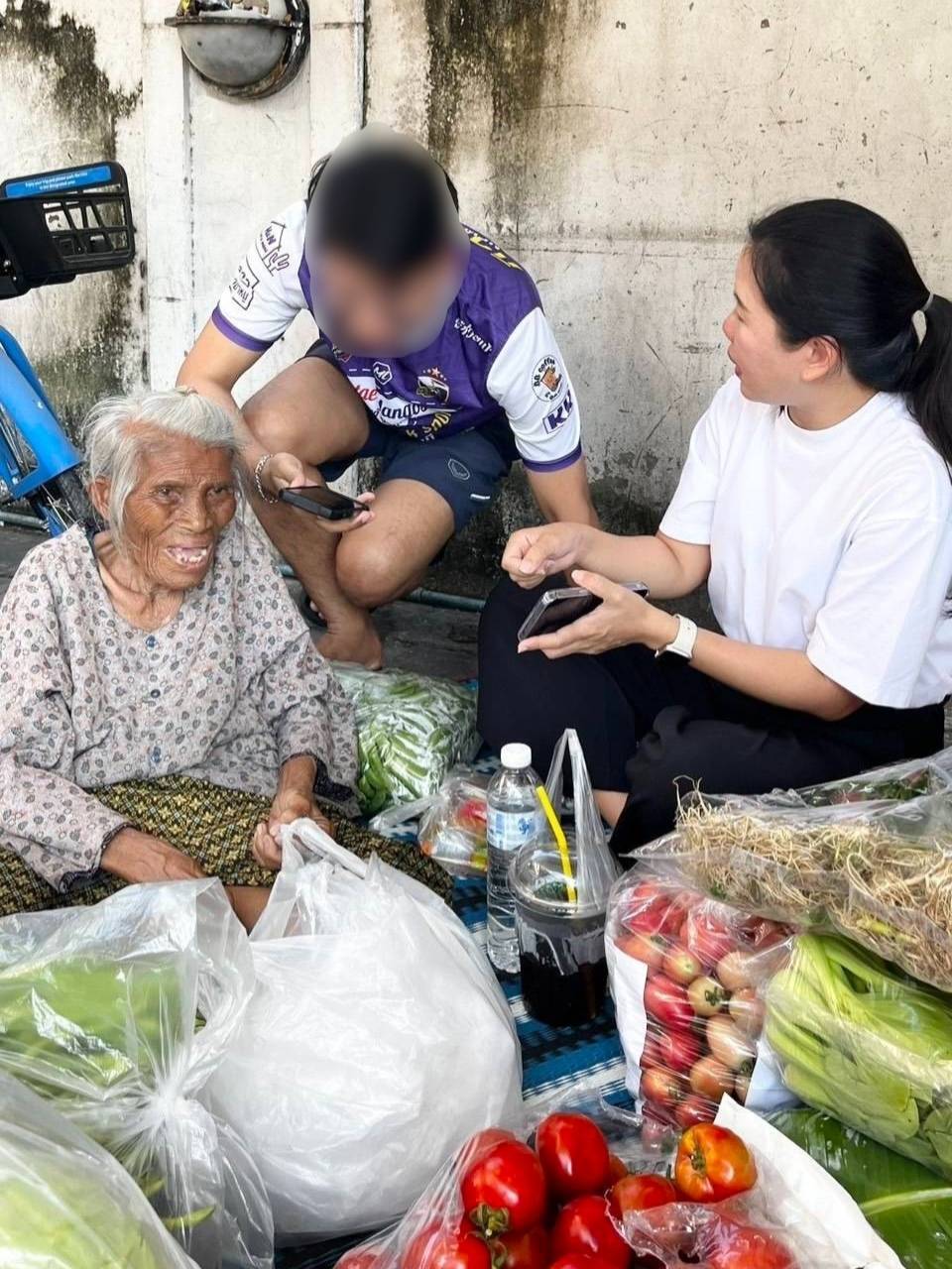และคุ้มครองสิทธิผู้สูงอายุ กรมกิจการผู้สูงอายุ (ผส.) ลงพื้นที่ตรวจสอบข้อเท็จจริง พบว่า คุณยาย อายุ 77 ปี สุขภาพแข็งแรงดี ไม่มีโรคประจำตัว มีภูมิลำเนาอยู่สุพรรณบุรี สถานภาพหม้าย ขณะนี้ อาศัยอยู่กับบุตรสาว 2 คน อายุ 33 ปี และ 45 ปี ในห้องเช่าของแฟลตคลองจั่น ย่านบางกะปิ กรุงเทพฯ โดยช่วยกันขายผักสดบนสะพานลอย บริเวณหน้าสนามการกีฬาแห่งประเทศไทย (กทท.) ซึ่งในแต่ละวัน บุตรสาวจะขี่รถจักรยานยนต์ พร้อมคุณยายนั่งซ้อนท้ายไปซื้อผักวันละ 2 รอบ จากตลาดไทและตลาดสี่มุมเมือง สำหรับสิทธิสวัสดิการสังคมนั้น คุณยายได้รับเบี้ยยังชีพผู้สูงอายุรายเดือน และสิทธิบัตรทองในการรักษาพยาบาล
