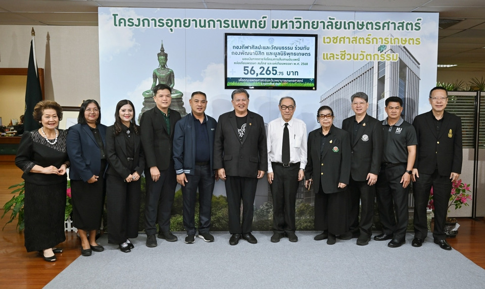 2.กองกีฬาศิลปะและวัฒนธรรม ร่วมกับกองพัฒนนิสิต และมูลนิธิพุทธเกษตร มอบเงินจากการจัดโครงการสืบสานประเพณีหล่อเทียนพรรษา สมโภช และแห่เทียนพรรษา พ.ศ.2568 จำนวน 56,265.75 บาท