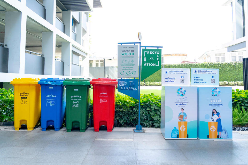 การเดินทางของขยะพลาสติกเริ่มต้นที่การคัดแยกโดยลูกบ้านใน T77 Community คอมมูนิตี้สีเขียวที่สมบูรณ์แบบที่สุดใจกลางเมือง ซึ่งเป็นต้นแบบของชุมชนแห่งการอยู่อาศัยที่ยั่งยืนจากแสนสิริและ The Society Phuket โซเชียล สเปซ แห่งแรกของแสนสิริในภูเก็ตใจกลางย่านบางเทา - เชิงทะเล โดยมี พลัส พร็อพเพอร์ตี้ ผู้เชี่ยวชาญด้านการบริหารจัดการที่อยู่อาศัย ทำหน้าที่จัดเตรียมระบบรับทิ้งเพื่อแยกพลาสติกใช้แล้ว (ทั้งขวดพลาสติกใสและขุ่น) ซึ่งขั้นตอนนี้ไม่ใช่แค่การทิ้งขยะเพียงเท่านั้น แต่เป็นการสร้างความตระหนักรู้ ที่แสนสิริมุ่งมั่นส่งเสริมให้ลูกบ้านเห็นถึงคุณค่าของการคัดแยกขยะ และเห็นถึงประโยชน์ของการหมุนเวียนขยะกลับมาเป็นทรัพยากรใหม่อย่างเป็นรูปธรรม