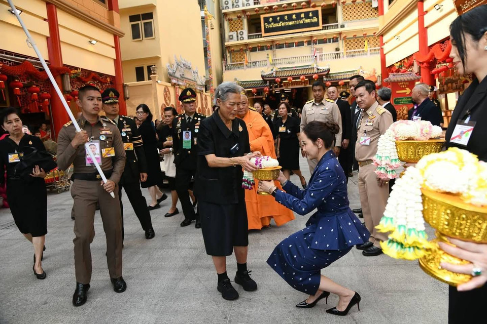 การนี้เวลา 09.57 น. สมเด็จพระกนิษฐาธิราชเจ้า กรมสมเด็จพระเทพรัตนราชสุดา ฯ สยามบรมราชกุมารี เสด็จพระราชดำเนินโดยรถยนต์พระที่นั่งจากโรงพยาบาลเทียนฟ้ามูลนิธิ ไปยังวัดมังกรกมลาวาส เมื่อเสด็จฯ ถึงพระคณาจารย์จีนธรรมวชิรานุวัตร เจ้าอาวาสวัดมังกรกมลาวาส คณะกรรมการจัดงานฯ และประชาชนเฝ้า ฯ รับเสด็จ โดยมีนางปภัชญา สิริวัฒนภักดี นางนันท์ฐิตา ศิริคุปต์และนางอรุณี ลิ้มประนะ ทูลเกล้า ฯ ถวายพวงมาลัย