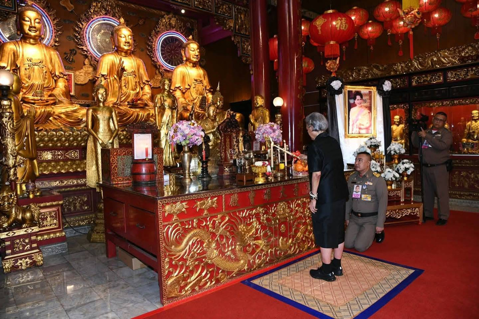 เสด็จฯ ไปยังที่ประดิษฐานพระอวโลกิเตศวรโพธิสัตว์กวนอิม ทรงถวายผลไม้ จำนวน 12 ชนิด ทรงวางพวงมาลัย