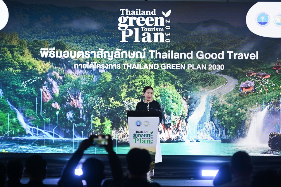 กรมการท่องเที่ยว กระทรวงการท่องเที่ยวและกีฬา จัดงาน พิธีมอบตราสัญลักษณ์มาตรฐานการท่องเที่ยวไทยอย่างยั่งยืน Thailand Good Travel ภายใต้โครงการ THAILAND GREEN PLAN 2030 ด้วยแนวคิด Champions of Change “เปิดตัวต้นแบบการเปลี่ยนผ่านสู่ความยั่งยืน” เพื่อประกาศความสำเร็จและยกย่องแหล่งท่องเที่ยวและผู้ประกอบการที่ผ่านกระบวนการคัดเลือกตามมาตรฐานด้านความยั่งยืน พร้อมประชาสัมพันธ์ศักยภาพของผู้ประกอบการและแหล่งท่องเที่ยวไทยสู่กลุ่มนักท่องเที่ยวเป้าหมายทั้งในประเทศและระดับนานาชาติ โดยได้รับเกียรติจาก นางสาวนัทรียา ทวีวงศ์ ปลัดกระทรวงการท่องเที่ยวและกีฬา เป็นประธานในพิธีเปิดงาน