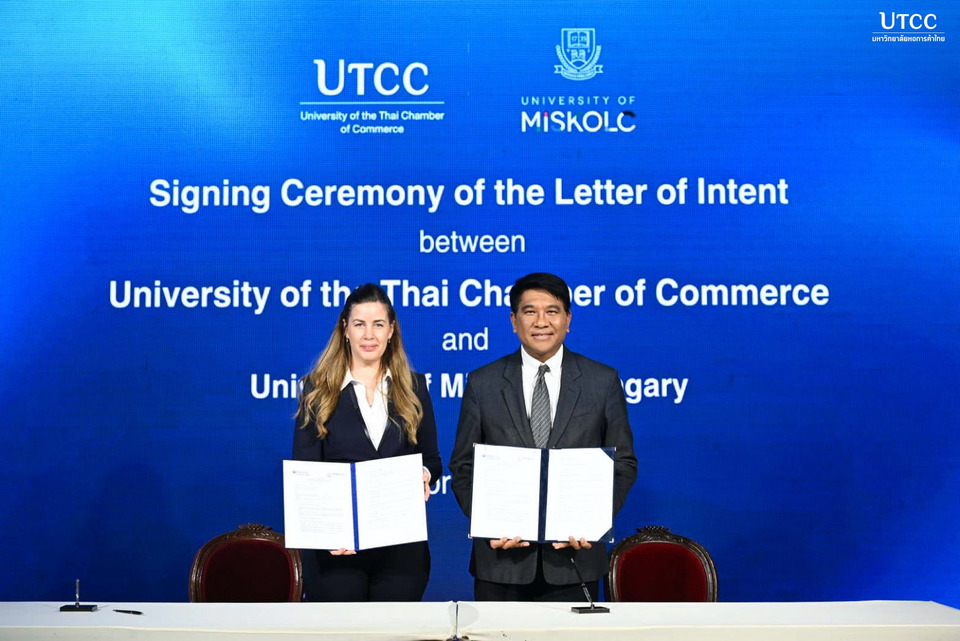 มหาวิทยาลัยหอการค้าไทย (University of the Thai Chamber of Commerce: UTCC) เดินหน้าขยายความร่วมมือทางการศึกษาระดับนานาชาติอย่างเป็นรูปธรรม โดยได้จัดพิธีลงนาม Letter of Intent on the Establishment of a Double Degree Programme: Master of Business Administration (MBA) ร่วมกับ University of Miskolc สาธารณรัฐฮังการี เพื่อวางกรอบความร่วมมือในการพัฒนาหลักสูตรปริญญาโทแบบสองสถาบัน (Double Degree Programme) ในสาขาบริหารธุรกิจ