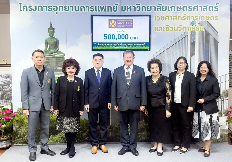 มูลนิธิกรุงศรีมอบเงินสนับสนุน 500,000 บาท แก่มหาวิทยาลัยเกษตรศาสตร์ เพื่อสมทบก่อสร้างโรงพยาบาลเกษตรศาสตร์ ภายใต้โครงการอุทยานการแพทย์ รองรับการผลิตบุคลากรทางการแพทย์และยกระดับระบบสาธารณสุขไทยอย่างยั่งยืน