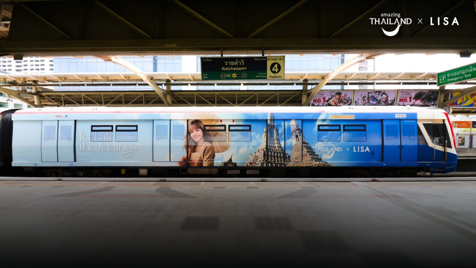 หลังจากที่ ททท. ได้ปล่อยภาพยนตร์โฆษณาใหม่ “feel all the feelings” ถ่ายทอดมุมมองของ “ลิซ่า” ผ่านคำถามชวนค้นหาว่า What does Thailand feel like? หรือ “ประเทศไทยให้ความรู้สึกแบบไหน” ก่อนจะพาผู้ชมออกเดินทางไปสัมผัสเสน่ห์ของการท่องเที่ยวไทยในหลากหลายมิติ ทั้งช่วงเวลาแห่งการพักผ่อน การเติมพลังใจ และความงดงามในทุกโมเมนต์ของชีวิต ที่สะท้อนเอกลักษณ์เฉพาะตัวของประเทศไทยซึ่งหาไม่ได้จากที่อื่นบนโลก ผ่านสถานที่ท่องเที่ยวอันงดงามทั่วประเทศไทย ล่าสุด ททท. ได้ต่อยอดแคมเปญฯ ด้วยการชวนคนไทย “ตามรอยลิซ่า” ให้ผู้คนร่วมสนุกกับการออกตามหาภาพ “ลิซ่า” จากแคมเปญโฆษณาล่าสุด ที่พบเจอได้ผ่านสื่อโฆษณาหลากหลายรูปแบบ ไม่ว่าจะเป็นรถไฟฟ้าบีทีเอสสายสีเขียวอ่อน (สายสุขุมวิท) และสีเขียวเข้ม (สายสีลม) ถูกเนรมิตให้เป็นสื่อโฆษณาแบบหุ้มขบวน ถ่ายทอดบรรยากาศของแคมเปญ Amazing Thailand x LISA “feel all the feelings” ให้ผู้โดยสารได้สัมผัสอารมณ์ความรู้สึกระหว่างการเดินทางในชีวิตประจำวัน โดยจะทำการเผยแพร่ตั้งแต่วันนี้ถึงพฤษภาคม 2569 ไม่เพียงแค่ตกแต่งภายนอกเท่านั้นแต่ภายในขบวนรถไฟฟ้ายังถูกตกแต่งด้วยภาพลักษณ์ของแคมเปญอย่างโดดเด่น ควบคู่กับภาพสถานที่ท่องเที่ยวสำคัญจากทั่วประเทศไทย พร้อมวิ่งผ่านแลนด์มาร์คใจกลางเมือง ครอบคลุม 9 สถานีสำคัญ ได้แก่ สถานีสยาม (ทั้งฝั่งบนและฝั่งล่าง), สถานีพญาไท, สถานีอนุสาวรีย์ชัยสมรภูมิ, สถานีชิดลม, สถานีอ่อนนุช, สถานีช่องนนทรี, สถานีศาลาแดง, สถานีอโศก และสถานีพร้อมพงษ์ แคมเปญนี้ยังสร้างประสบการณ์การพบเจอ “ลิซ่า” ระหว่างการเดินทาง ชวนให้ผู้โดยสารร่วมเก็บภาพความประทับใจตลอดเส้นทาง และร่วมสัมผัสทุกอารมณ์ความรู้สึกไปพร้อมกันกับ feel all the feelings