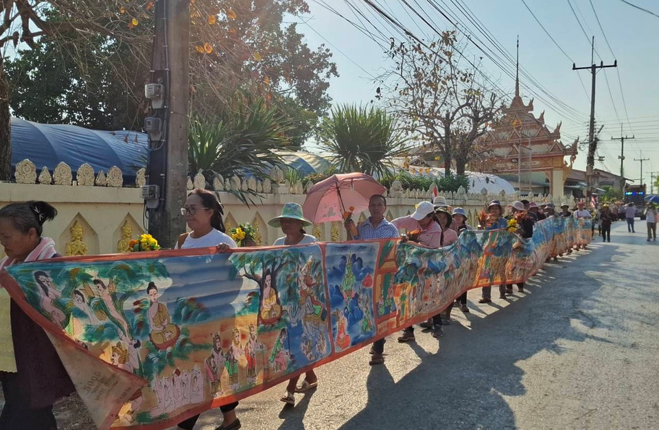 วันที่ 22 ก.พ.69 ที่วัดโพธิ์ชัยบ้านตูม หมู่ 4 และหมู่ 19 ต.บัวบาน อ.ยางตลาด จ.กาฬสินธุ์ พระครูโพธิชยานุโยค เจ้าคณะตำบลบัวบาน เขต 1 พร้อมด้วยนางพัชราวลัย ไร่ไสว ผู้ใหญ่บ้านตูม หมู่ 4 นายณัฐวัฒน์ ภูนาสูง ผู้ใหญ่บ้านตูม หมู่ 19 ร่วมกับคณะสงฆ์ ผู้นำชุมชน คณะกรรมการหมู่บ้าน ร่วมกันจัดงานบุญผะเหวด ฟังเทศน์มหาชาติ หรือบุญมหาชาติ หรือบุญเดือน 4 โดยมีพี่น้องประชาชนชาวพุทธ ในพื้นที่ ต.บัวบานและใกล้เคียง ร่วมทำบุญโดยบริจาคปัจจัย จัดต้นดอกเงินถวายวัด และมีการ “จกกัณฑ์” (ภาษาอีสาน ความหมาย จับสลากกัณฑ์เทศน์มหาชาติ) เพื่อเสี่ยงทายดวงชะตาราศีในรอบปี ตามคติความเชื่อ