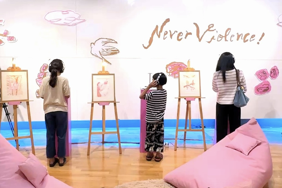 นอกจากนั้น ยังมี นิทรรศการ “Never Violence!” ซึ่งจัดแสดงต่อเนื่องถึงวันที่ 1 มีนาคม 2569 ณ TK Park ชั้น 8 เซ็นทรัลเวิลด์ นิทรรศการเริ่มต้นจากคำถามเรียบง่ายว่า “เราจะอยู่ร่วมกันอย่างอ่อนโยนได้อย่างไรในชีวิตประจำวัน” ถ่ายทอดแนวคิดผ่านงานศิลปะ ภาพ เสียง และพื้นที่เงียบที่ชวนให้ผู้ชม “หยุด” เพื่อฟังทั้งตนเองและผู้อื่น เปิดพื้นที่ให้ค่อย ๆ สำรวจความหมายของการดูแลกัน ตั้งแต่ความสัมพันธ์ในครอบครัวไปจนถึงการอยู่ร่วมกันในสังคม โดยมีผลงานภาพประกอบของ Juli Baker and Summer เป็นหัวใจของประสบการณ์การชมที่ละเอียดอ่อนและตีความได้ด้วยตนเอง