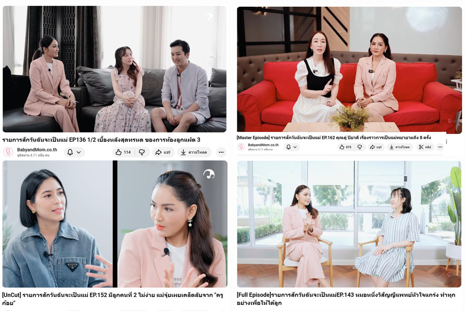• YouTube Channel: BabyAndMom.co.th รวมคลังวิดีโอความรู้จากรายการ “สักวันฉันจะเป็นแม่”, “ครูก้อยพบแพทย์” และ “Research Talk”