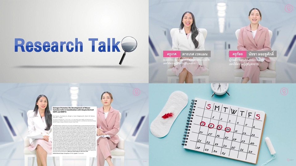 และรายการ “Research Talk” รายการที่ครูก้อยนำเสนอและวิเคราะห์งานวิจัยด้านภาวะเจริญพันธุ์ การเตรียมตั้งครรภ์ และสุขภาพผู้หญิง โดยถ่ายทอดองค์ความรู้ทางวิทยาศาสตร์จากงานวิจัยระดับนานาชาติในรูปแบบที่เข้าใจง่าย และเชื่อมโยงกับการดูแลสุขภาพในชีวิตจริง