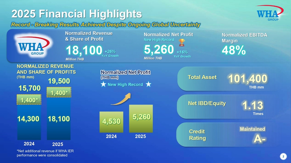WHA โชว์กำไรปกติปี 68 ที่ 5,261 ล้านบาท โต 16% (Y-Y) สร้าง New Record High ติดต่อกันเป็นปีที่ 4 พร้อมประกาศพันธกิจ 2569 “ WHA: SHAPE THE FUTURE FOR THAILAND” สร้างโอกาสเพื่อธุรกิจ อุตสาหกรรม และการลงทุนของไทยสู่ยุค “เศรษฐกิจใหม่”