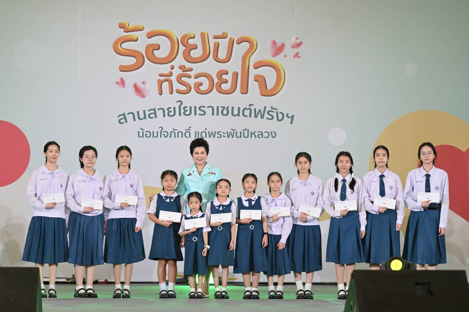 จากนั้น ดร. ศศมณฑ์ สงวนสิน ได้มอบทุนการศึกษา SF Gracious Lady Award แก่นักเรียนทุกระดับชั้น ตั้งแต่ชั้นประถมศึกษาปีที่ 1 ถึงชั้นมัธยมศึกษาปีที่ 6 จำนวน 12 ทุน เพื่อส่งเสริมและสนับสนุนโอกาสทางการศึกษาให้แก่นักเรียนที่มีคุณสมบัติตามอัตลักษณ์ของศิษย์เซนต์ฟรัง ได้แก่ เป็นสตรีที่สง่างาม ทั้งกริยา และจิตใจ มีมารยาทดีตามแบบแผนกุลสตรี มีเมตตากรุณาต่อเพื่อนมนุษย์ และรู้จักการอุทิศตนเพื่อส่วนรวม