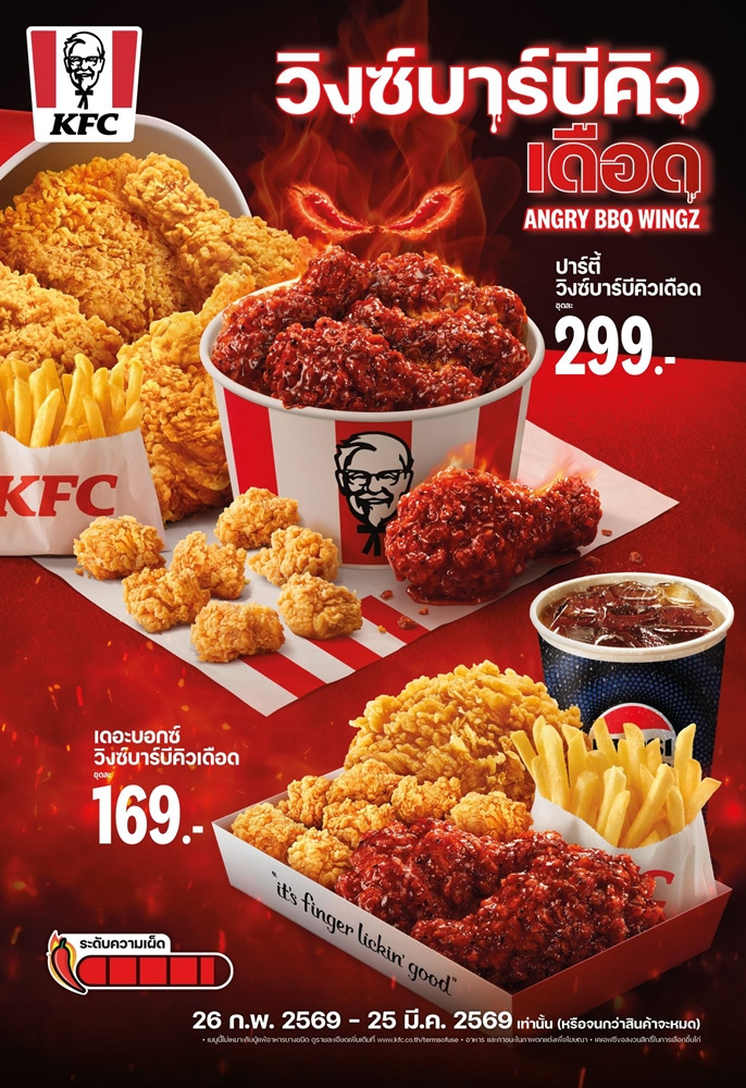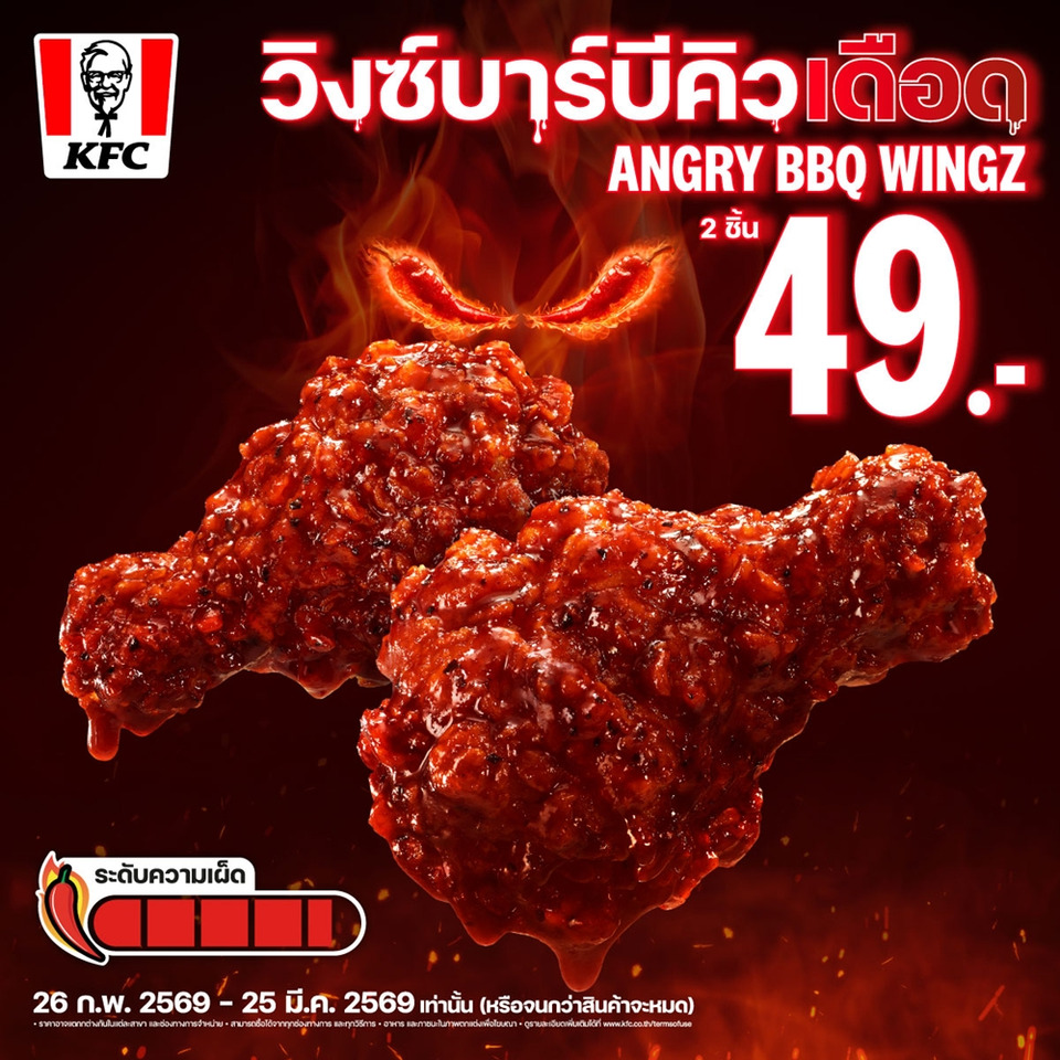 ท้าพิสูจน์ความเดือดของ “วิงซ์บาร์บีคิวเดือด” ด้วยตนเอง เพราะครั้งนี้ KFC ไม่ได้ขายแค่ความเผ็ดตั้งแต่คำแรก แต่ชวนสัมผัสประสบการณ์ความเดือดที่ค่อยๆ ไต่ระดับแบบสโลว์เบิร์น จนเผ็ดร้อนแบบไม่ทันตั้งตัว และมีเพียงลิ้นของคุณเท่านั้นที่ให้คำตอบได้ ลองเช็คดีกรีความเดือดของคุณว่า เผ็ดช้าได้กี่วินาที ได้ที่ KFC ทุกสาขาทั่วประเทศ (ยกเว้นสาขาสนามบินดอนเมืองและสุวรรณภูมิ) ตั้งแต่วันนี้ – 25 มีนาคม 2569 เท่านั้น