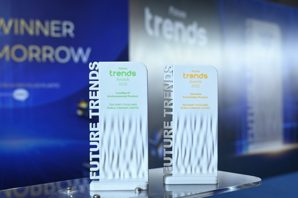 บริษัท ทีโอเอ เพ้นท์ (ประเทศไทย) จำกัด (มหาชน) หรือ TOA ผู้นำนวัตกรรมรักษ์โลกของอุตสาหกรรมสีอันดับ 1 เคมีภัณฑ์ก่อสร้าง และวัสดุตกแต่งพื้นผิวครบวงจรของไทย เดินหน้าสร้างประวัติศาสตร์ความสำเร็จอย่างต่อเนื่อง ล่าสุดคว้าเพิ่ม 2 รางวัลใหญ่บนเวที Future Trends Awards 2026 ได้แก่ รางวัลสุดยอดองค์กรผู้นำเทรนด์ “The Most Trend Setter Product” และรางวัลองค์กรยอดเยี่ยมด้านนวัตกรรมรักษ์โลก และความเป็นเลิศด้าน ESG “Leading of Environmental Product” สะท้อนภาพลักษณ์องค์กรแห่งอนาคตที่มุ่งเน้นนวัตกรรมและการเติบโตอย่างยั่งยืน ภายใต้แนวคิด "Knowing Future, Be The Winner of Tomorrow" เพื่อมอบให้กับองค์กร แบรนด์ ผลิตภัณฑ์ และบุคคลแห่งอนาคต ผู้สร้างสรรค์นวัตกรรมใหม่ๆ เพื่อประกาศ และเชิดชูความสําเร็จให้แก่แบรนด์ที่มีความคิดริเริ่มสร้างสรรค์งานที่มีความโดดเด่น ซึ่งก่อให้เกิดคุณค่าต่อสังคมเป็นวงกว้าง