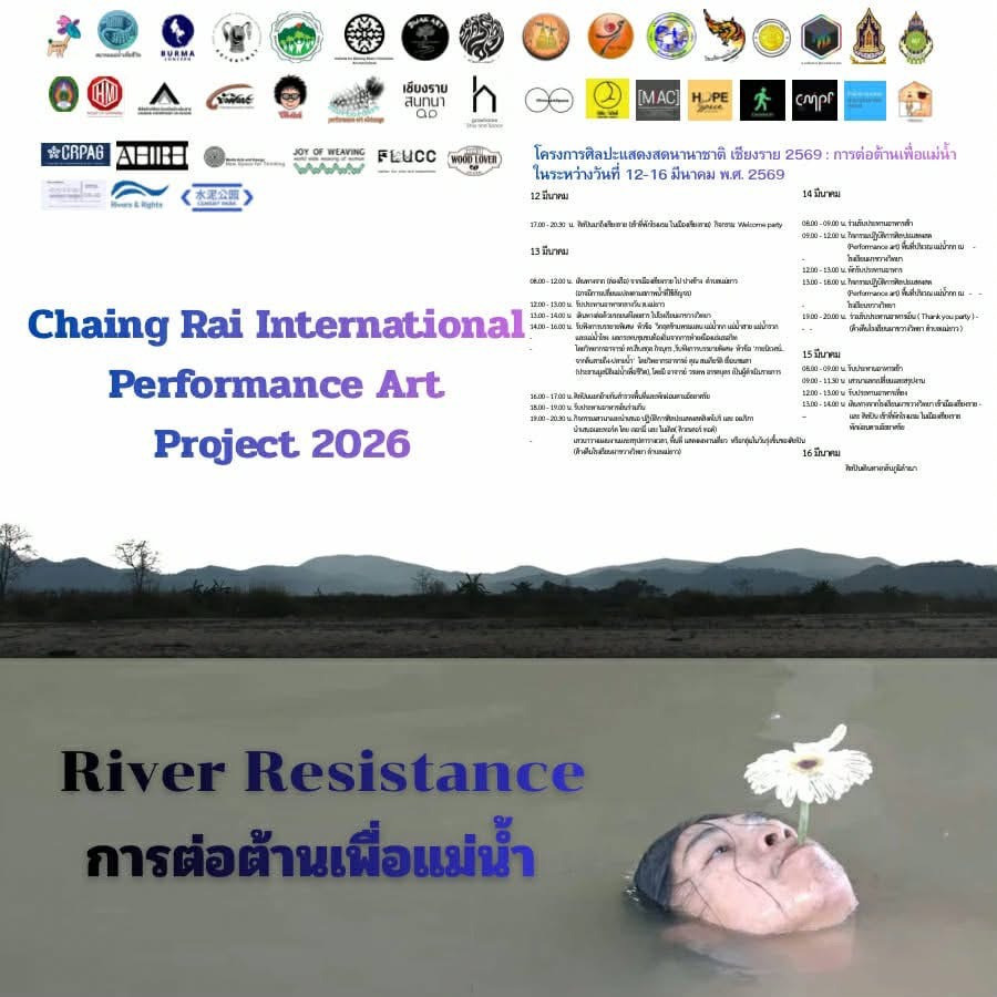 โครงการศิลปะแสดงสดนานาชาติ เชียงราย 2569 เป็นการ “ต่อต้านเพื่อแม่น้ำ (River Resistance)” โดยการเข้าร่วมของศิลปินไทยและนานาชาติ รวม 11 ประเทศ ได้แก่ เมียนมา ฟิลิปปินส์ อินเดีย ศรีลังกา สิงคโปร์ ไต้หวัน จีน อาร์เจนตินา ออสเตรีย สหรัฐอเมริกา และไทย จำนวน 45 คน ที่จะร่วมแสดงศิลปะริมแม่น้ำกก จังหวัดเชียงราย ระหว่างวันที่ 12-16 มีนาคม 2569 เพื่อร่วมกันสะท้อนให้สิ่งที่มองไม่เห็น เช่น ความเสี่ยง การปนเปื้อน ความหวาดหวั่นของชุมชน กลายเป็นประสบการณ์ที่ผู้คนสัมผัสได้จริง