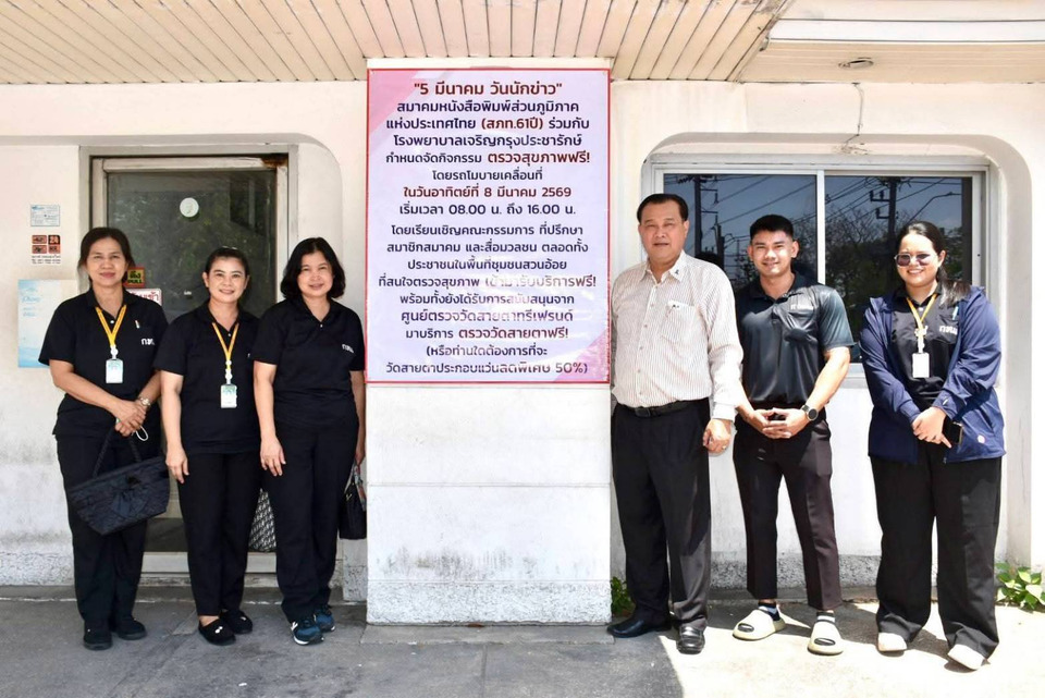 วันที่ 4 มีนาคม 2569 ที่สมาคมหนังสือพิมพ์ส่วนภูมิภาคแห่งประเทศไทย สี่แยกการเรือน เขตดุสิต กรุงเทพมหานคร นายอนันต์ นิลมานนท์ นายกสมาคมหนังสือพิมพ์ส่วนภูมิภาคแห่งประเทศไทย (สภท.61ปี) เปิดเผยว่า เนื่องในโอกาส “วันนักข่าว 5 มีนาคม” ประจำปี 2569 สมาคมฯ ได้ร่วมกับโรงพยาบาลเจริญกรุงประชารักษ์ จัดกิจกรรมตรวจสุขภาพฟรี! ให้กับสมาชิกสื่อมวลชนและประชาชนในพื้นที่ใกล้เคียง โดยกำหนดจัดขึ้นใน"วันอาทิตย์ที่ 8 มีนาคม 2569"ตั้งแต่เวลา 08.00 – 16.00 น. ณ สมาคมหนังสือพิมพ์แห่งประเทศไทย ในพระบรมราชูปถัมภ์ เลขที่ 299 ถนนราชสีมา เขตดุสิต กรุงเทพมหานคร