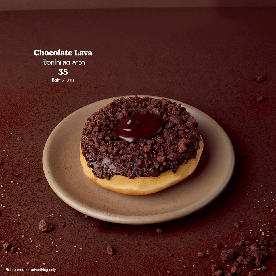 “ช็อกโกแลต ลาวา” (Chocolate Lava) โดนัทเคลือบดาร์กช็อกโกแลต สอดไส้ช็อกโกแลตลาวาเยิ้มๆ พร้อมโรยช็อกโกแลตครัมเบิลด้านบน ให้ความอร่อยแบบดับเบิ้ล