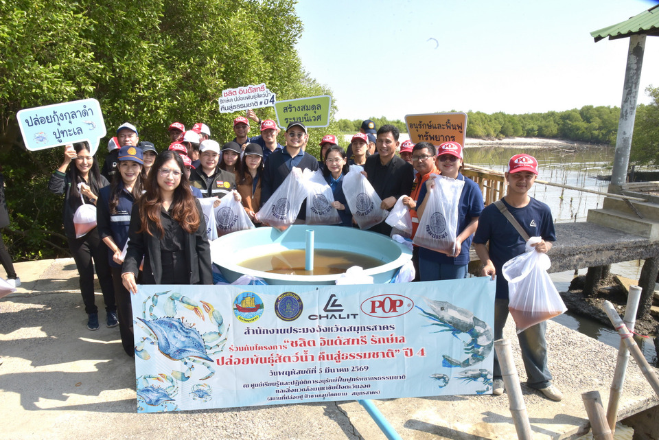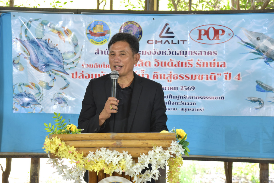 กิจกรรมดังกล่าวจัดขึ้นในวันพฤหัสบดีที่ 5 มีนาคม 2569 เวลา 08.30 – 10.00 น. ณ ศูนย์เรียนรู้และปฏิบัติการอนุรักษ์ชายฝั่งและสิ่งแวดล้อมฝั่งตะวันตกมหาชัย อำเภอเมืองสมุทรสาคร จังหวัดสมุทรสาคร โดยภายในงานมีการปล่อยพันธุ์สัตว์น้ำ ประกอบด้วย กุ้งกุลาดำ จำนวน 200,000 ตัว และปูทะเล จำนวน 10,000 ตัว ซึ่งเพาะขยายพันธุ์โดยศูนย์วิจัยและพัฒนาการเพาะเลี้ยงสัตว์น้ำชายฝั่งสมุทรสาคร