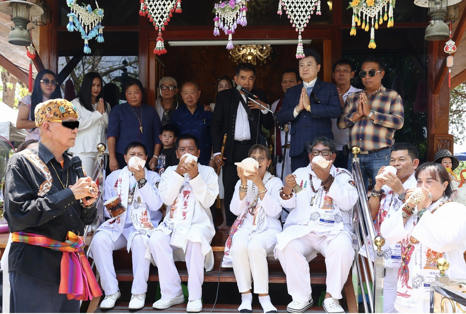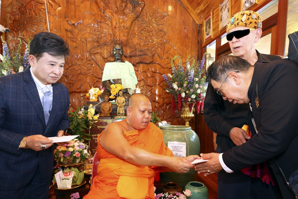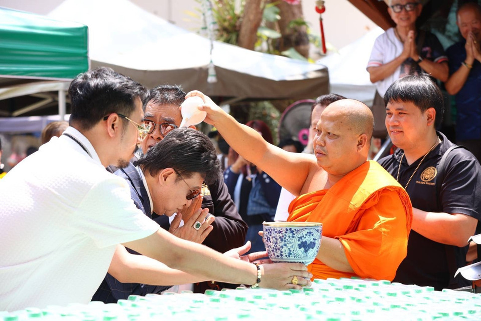 ปิดท้ายด้วยการแจก “น้ำพุทธมนต์” จากบ่อน้ำมนต์ศักดิ์สิทธิ์ วัดสรนาท จังหวัดระยอง จำนวน 1,000 ขวดให้กับคุณแม่บุญเรือน โตงบุญเติม เพื่อเป็นเทวตาพลี แจกกับทุก ๆ ท่านที่มาร่วมงาน คุณแม่บุญเรือน ระหว่างวันที่ 9-10 มีนาคม 2569 ณ วัดท่าผา อ.บ้านโป่ง จ.ราชบุรี