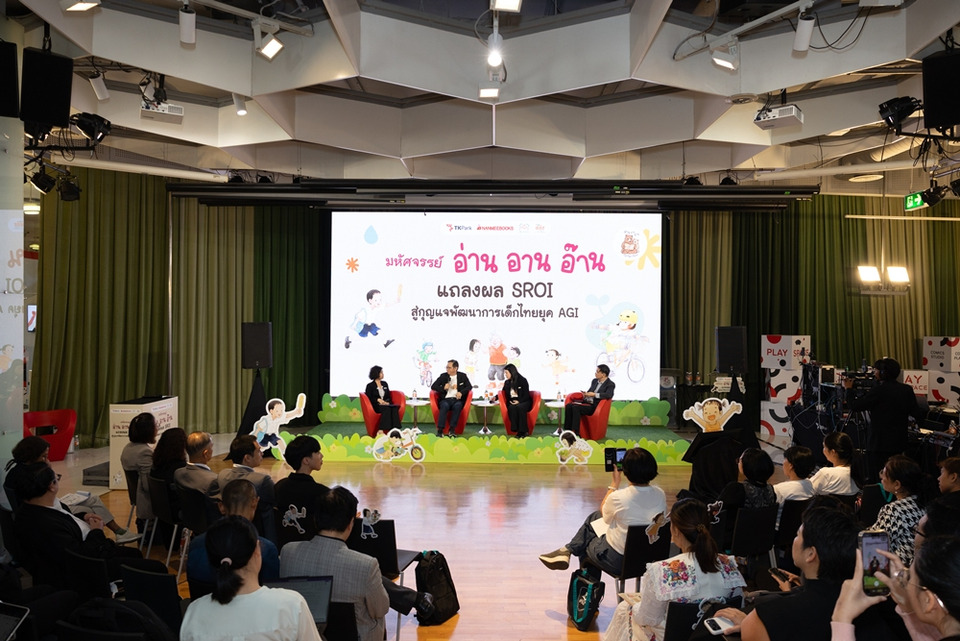 โดยแผนงานสร้างเสริมวัฒนธรรมการอ่าน สสส. ร่วมกับ TK Park และภาคีเครือข่าย ได้จัดประชุมวิชาการ “มหัศจรรย์ อ่าน อาน อ๊าน : แถลงผล SROI สู่กุญแจพัฒนาการเด็กไทยยุค AGI” เมื่อวันที่ 5 มีนาคม 2569 เพื่อเผยแพร่ผลการประเมินดังกล่าว