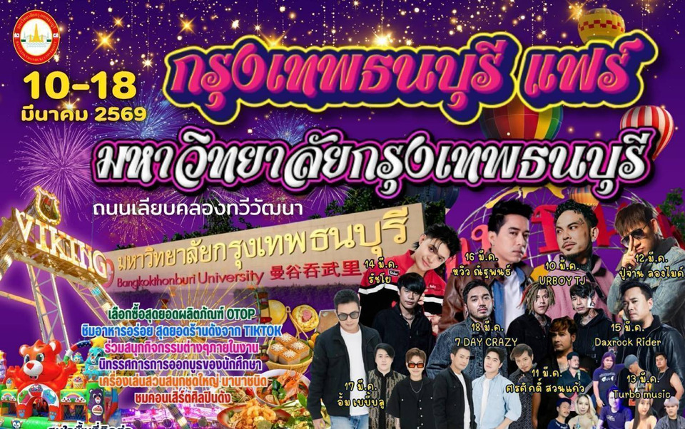 ทั้งนี้ ผู้บริหาร คณาจารย์ นักศึกษา และประชาชนให้ความสนใจเข้าร่วมงานอย่างคับคั่ง โดยงาน “กรุงเทพธนบุรี แฟร์” จัดขึ้น ณ ลานหน้า BANGKOKTHONBURI HALL มหาวิทยาลัยกรุงเทพธนบุรี ระหว่างวันที่ 10–18 มีนาคม 69