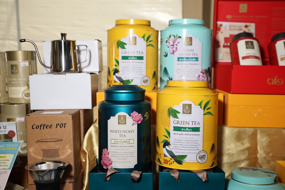 อีกทั้งยังมี ผลิตภัณฑ์ชาคุณภาพจากยอดดอยของโครงการหลวง ที่สะท้อนเสน่ห์ของเครื่องดื่มเพื่อสุขภาพและภูมิปัญญาการปลูกชาบนพื้นที่สูง อาทิ ชากตัญญู–อายุยืน ชาเขียวอัสสัมคั่วหอมที่ผสานกลิ่นมะม่วงและสตรอว์เบอร์รีอย่างลงตัว ให้รสนุ่มละมุนชุ่มคอ, ชาอู่หลง 12 Oolong Tea Set ชุดชาพรีเมียมบรรจุในโถเซรามิคลวดลายพู่กันจีน เหมาะสำหรับนักสะสมและเป็นของขวัญล้ำค่า, ชาขาวไวท์พีโอนี ที่คัดเฉพาะยอดอ่อนของชาป่าบนพื้นที่สูง ให้กลิ่นหอมอ่อน ๆ และรสนุ่มละมุน, ชาแดงอัดแผ่น ที่ผ่านกระบวนการหมักอย่างพิถีพิถันจนได้รสเข้มลึกและหวานปลายลิ้น, ชุดชาพิเศษชาแดง ที่ผลิตจากยอดชาเก็บมือแบบ 1 ยอด 2 ใบอ่อน ให้กลิ่นหอมเฉพาะตัวของชาแดงชั้นดี, ชาอู่หลงกลิ่นข้าวเหนียวมะม่วงพร้อมชง ที่ถ่ายทอดเสน่ห์ขนมไทยผ่านกลิ่นหอมของมะม่วงสุกและข้าวเหนียวมูน และ ชาเขียวป่าดอกเก็กฮวย จากแหล่งปลูกธรรมชาติบนดอยม่อนเงาะ ที่ให้รสเข้มและกลิ่นหอมเฉพาะตัวของชาอัสสัม