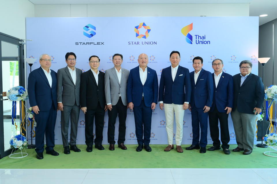 นายปรินทร์ธรณ์ อภิธนาศรีวงศ์ (กลาง) ประธานกรรมการบริหาร พร้อมด้วย นายสมโภชน์ วัลยะเสวี (ที่ 2 จากขวา) ประธานเจ้าหน้าที่บริหาร บริษัท สตาร์เฟล็กซ์ จำกัด (มหาชน) (SFLEX) ร่วมกับ นายธีรพงศ์ จันศิริ (ที่ 3 จากซ้าย) ประธานเจ้าหน้าที่บริหาร บริษัท ไทยยูเนี่ยน กรุ๊ป จำกัด (มหาชน) (TU) พร้อมด้วย นายปิยะเทพ สีตะจันทร์ (ที่ 2 จากซ้าย) กรรมการผู้จัดการ บริษัท สตาร์ยูเนี่ยน แพคเกจจิ้ง จำกัด ร่วมเปิดโรงงานสตาร์ยูเนี่ยน แพคเกจจิ้ง อย่างเป็นทางการ บนพื้นที่กว่า 7 ไร่ ในนิคมอุตสาหกรรมสินสาคร จังหวัดสมุทรสาคร