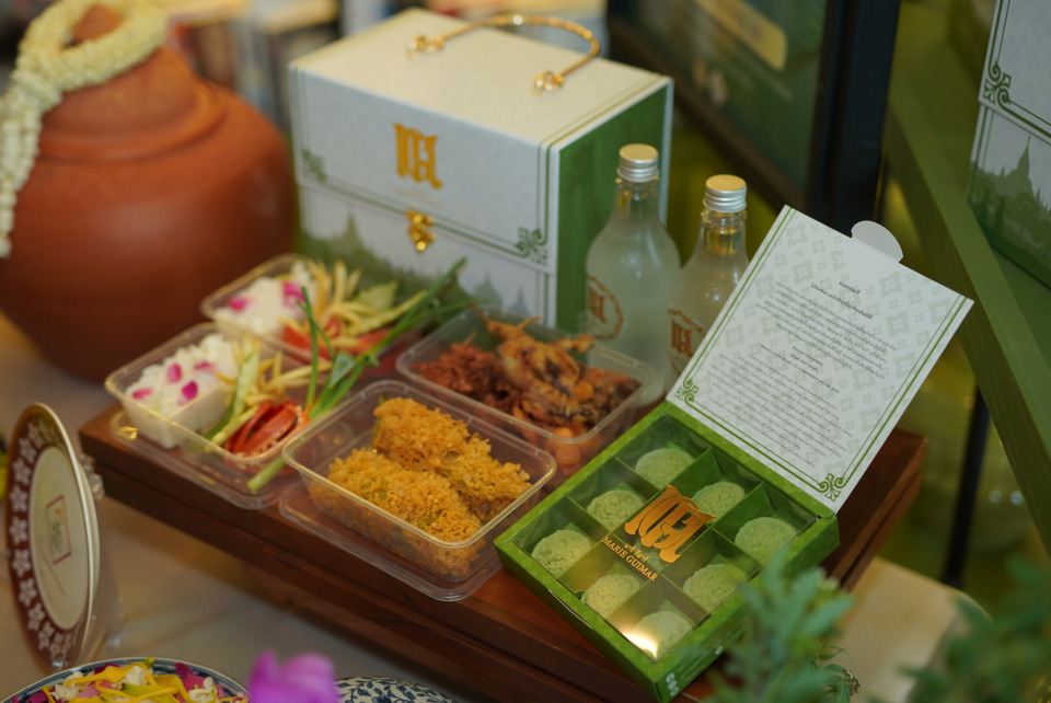 นอกจากนี้ทางร้านยังมี ชุดตะกร้าข้าวแช่สำหรับซื้อกลับบ้าน สำหรับ 2 ท่าน พร้อมขนมทองมารี 1 กล่อง ในราคา 1,299 บาท