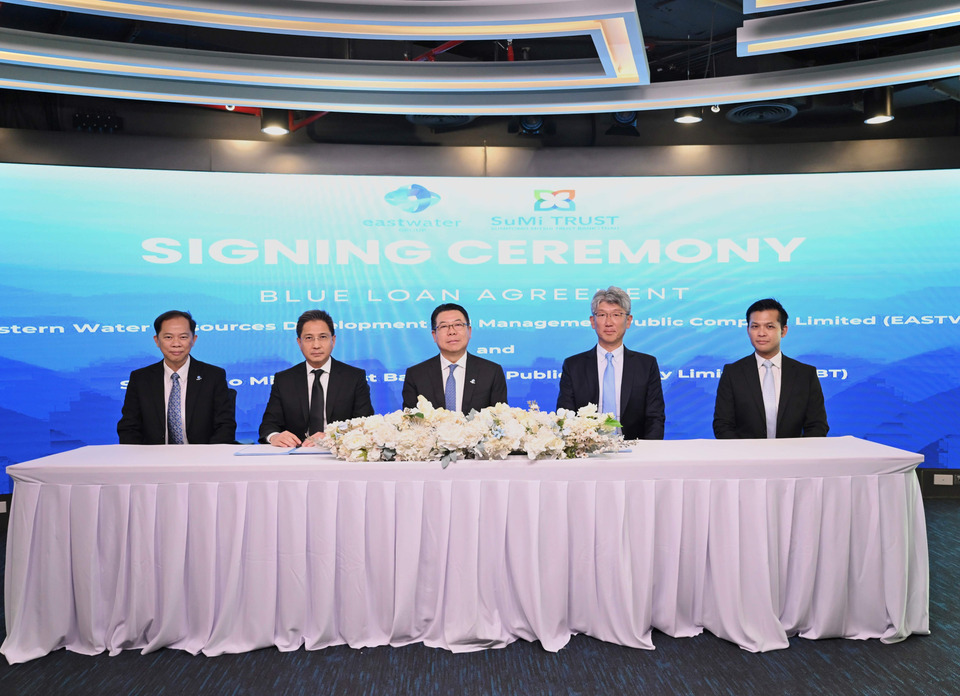 บริษัท จัดการและพัฒนาทรัพยากรน้ำภาคตะวันออก จำกัด (มหาชน) หรือ อีสท์ วอเตอร์ (EASTW) ประกาศความสำเร็จในการจัดหาแหล่งเงินทุนเพื่อความยั่งยืน โดยได้ลงนามในสัญญาสินเชื่อระยะยาวในรูปแบบ “Blue Loan” กับธนาคารซูมิโตโม มิตซุย ทรัสต์ (ไทย) จำกัด (มหาชน) (SMTBT) เพื่อนำไปใช้สนับสนุนโครงการพัฒนาและยกระดับระบบบริหารจัดการทรัพยากรน้ำอย่างมีประสิทธิภาพ สะท้อนความเชื่อมั่นของสถาบันการเงินชั้นนำที่มีต่อศักยภาพการดำเนินธุรกิจและความน่าเชื่อถือทางเครดิตของบริษัท