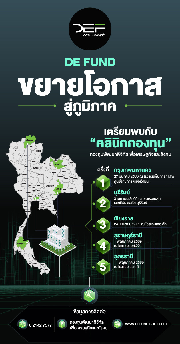 #DEFund #กองทุนดิจิทัล #คลินิกกองทุน #DigitalEconomy #นวัตกรรมดิจิทัล #เศรษฐกิจดิจิทัล #ทุนสนับสนุน #พัฒนาโครงการ #ข่าวเศรษฐกิจ #ข่าวเทคโนโลยี #BDE