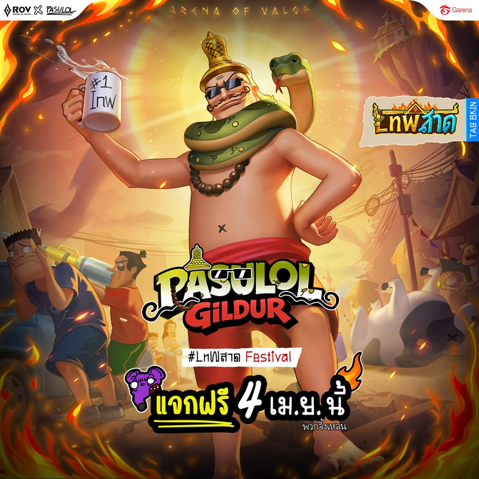 ไฮไลต์สำคัญของแคมเปญสงกรานต์ประจำปีนี้คือการจับมือกับศิลปินไทยชื่อดัง “PASULOL” (พสุ หล่อเพ็ญศรี) เจ้าของช่อง PASULOL ที่มีผู้ติดตามมากกว่า 4.3 ล้านบัญชี ร่วมรังสรรค์สกินสุดเอ็กซ์คลูซีฟให้กับฮีโร่ Gildur โดยได้รับแรงบันดาลใจในการออกแบบมาจากตัวละคร “พระอิศวร” ในการ์ตูนของ PASULOL โดยผู้เล่นสามารถรับสกินระดับ “LnW” นี้ได้ฟรี ผ่านกิจกรรมภายในเกม ตั้งแต่วันที่ 4 เมษายน เป็นต้นไป รับชมตัวอย่างสกินได้ ที่นี่