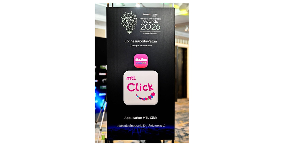 บริษัท เมืองไทยประกันชีวิต จำกัด (มหาชน) คว้ารางวัล “BUSINESS+ PRODUCT INNOVATION AWARDS 2026” ด้านนวัตกรรมชีวิตไลฟ์สไตล์ (Lifestyle Innovation) ต่อเนื่องเป็นปีที่ 7 นับตั้งแต่ปี 2020–2026 ตอกย้ำความสำเร็จของ “MTL Click Application” แพลตฟอร์มดิจิทัลที่พัฒนาเพื่อดูแลลูกค้าอย่างรอบด้านในทุกมิติสะท้อนถึงความมุ่งมั่นในการพัฒนานวัตกรรมด้านผลิตภัณฑ์และบริการอย่างต่อเนื่อง เพื่อยกระดับประสบการณ์ของลูกค้าให้ตอบโจทย์การใช้ชีวิตและไลฟ์สไตล์ของคนในยุคดิจิทัลได้อย่างแท้จริง