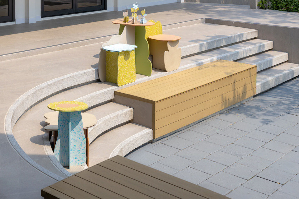 ภายในพื้นที่ประกอบด้วยเฟอร์นิเจอร์เพื่อการเรียนรู้หลากหลายรูปแบบ ได้แก่ กังหันปัจจุบันใจ (Rooting WindMill) เก้าอี้ที่ได้รับแรงบันดาลใจจากเมล็ดพืช ที่มาพร้อมกับกังหันดอกยางนา ที่เด็กๆ สามารถหมุนและควบคุมจังหวะด้วยตนเอง เพื่อฝึกสมาธิและการจดจ่อ, โต๊ะปัจจุบันใจ (Resilient Bloom Table) โต๊ะน่ารักๆ ระหว่างขั้นบันไดที่มาพร้อมกับชุดตัวต่อดอกไม้ที่ออกแบบให้เด็กและผู้ปกครองได้นั่งทำกิจกรรมร่วมกัน, เงาสีปัจจุบันใจ (The Shade of Self) ม่านโปร่งแสงหลากสี ที่ใช้แสงธรรมชาติสร้างเงาและสีที่เปลี่ยนไปตามช่วงเวลา ช่วยฝึกมองให้ลึกกว่าสิ่งที่เห็น เปิดพื้นที่ให้จินตนาการ ส่วน สตูลปัจจุบันใจ (Heartful Stools) ถูกออกแบบให้สามารถเคลื่อนย้ายและจัดวางได้อย่างอิสระ เปิดโอกาสให้เด็กได้ทดลองจัดพื้นที่ และเรียนรู้การปรับตัวผ่านการใช้งานด้วยตนเอง และ ม้านั่งปัจจุบันใจ (Bonding Bench) ที่สามารถเปลี่ยนจากเก้าอี้สำหรับหนึ่งคนให้เป็นม้านั่งเพื่อทุกคน ช่วยสร้างบรรยากาศของการสื่อสารและการอยู่ร่วมกันอย่างเรียบง่ายในพื้นที่เดียวกัน