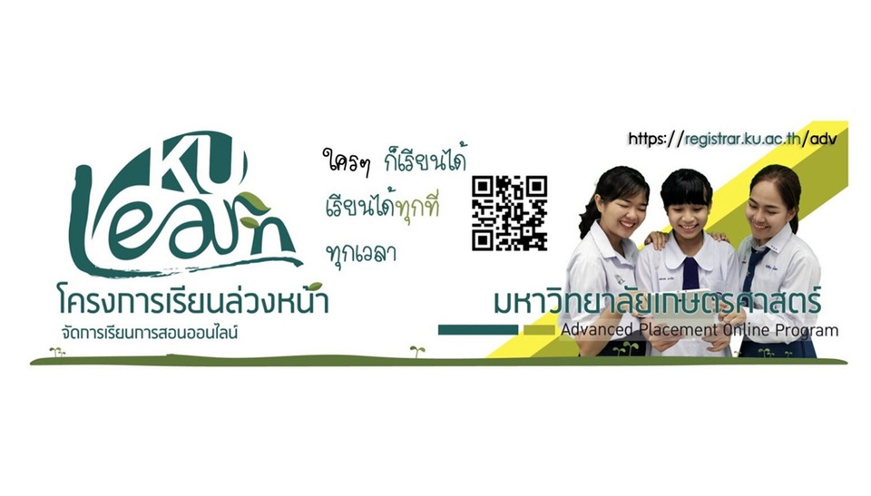 มหาวิทยาลัยเกษตรศาสตร์ เปิดรับสมัคร โครงการเรียนล่วงหน้า มก. (KU Advance Placement Program) รุ่นที่ 21/2 อย่างเป็นทางการแล้ว เพื่อเปิดโอกาสให้นักเรียนระดับมัธยมศึกษาตอนปลาย ตลอดจนผู้ที่ต้องการเตรียมความพร้อมสู่การศึกษาระดับมหาวิทยาลัย ได้เรียนรายวิชาระดับอุดมศึกษาล่วงหน้า ผ่านระบบออนไลน์ 100 เปอร์เซ็นต์