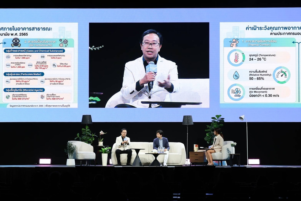 เผยภัยเงียบจากมลพิษในบ้าน และการเปิดตัวมาตรฐาน “IAQ Star” ภายในเซสชันการบรรยายหัวข้อ "อยู่รอดใต้เงาฝุ่น PM2.5:Healthspan กับคุณภาพอากาศ” คุณอิทธิ ภู่วรวงศ์ ผู้จัดการฝ่ายผลิตภัณฑ์วิจัยและพัฒนา ได้ชี้ให้เห็นประเด็นสำคัญว่า ในขณะที่คนส่วนใหญ่เฝ้าระวังค่าฝุ่น PM2.5 นอกบ้าน แต่คุณภาพอากาศภายในอาคาร (Indoor Air Quality - IAQ) กลับมักถูกมองข้าม ทั้งที่ส่งผลต่อสุขภาพโดยตรง เช่น อาการคัดจมูกหรือหายใจลำบากหลังตื่นนอน เพื่อแก้ไขปัญหานี้ ไดกิ้นและสมาคมอากาศสะอาดแห่งประเทศไทยได้แนะนำมาตรฐาน "IAQ Star" ซึ่งเป็นเกณฑ์การประเมินคุณภาพอากาศภายในอาคารที่ครอบคลุม 5 มิติสำคัญ ได้แก่ อุณหภูมิ, ความชื้น, ปริมาณคาร์บอนไดออกไซด์ (CO2), ฝุ่นละออง PM2.5 และสารประกอบอินทรีย์ระเหยง่าย (VOCs) เพื่อกำหนดนิยามของ "อากาศภายในบ้านที่ดี" อย่างเป็นรูปธรรม