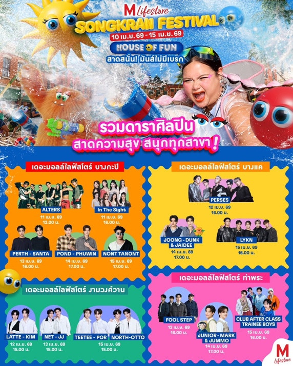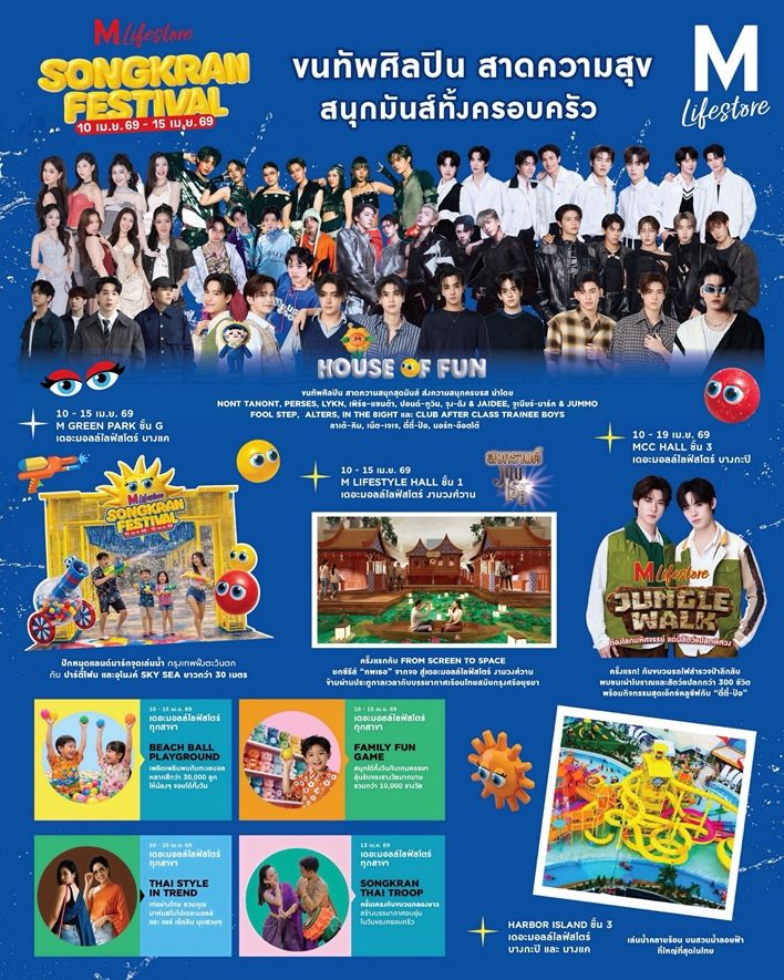 สงกรานต์ปีนี้ ไม่ต้องไปไหนไกล มาสาดความสุข สนุกไม่มีเบรก ฮอตกว่าใครในย่าน สนุกได้ทั้งครอบครัว กับงาน “THE MALL LIFESTORE SONGKRAN FESTIVAL 2026: HOUSE OF FUN” แล้วคุณจะรู้ว่าสงกรานต์…สนุกได้มากกว่าที่เคย! ติดตามรายละเอียดเพิ่มเติมได้ที่ FACEBOOK: THE MALL GROUP