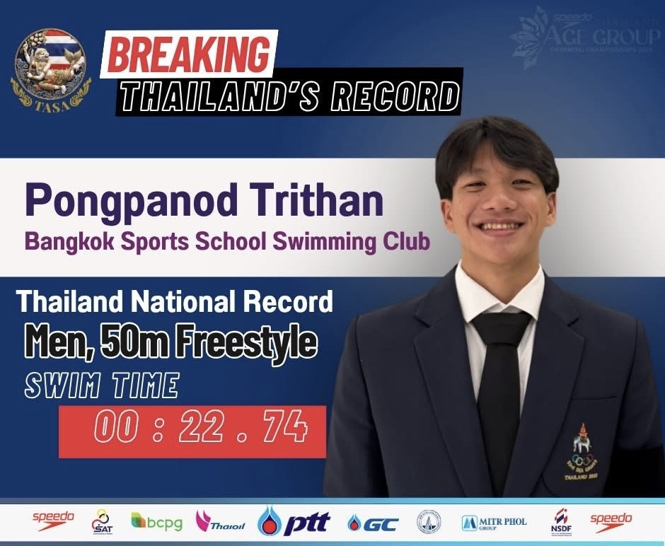เช่นเดียวกับ พงศ์ปณต ไตรทาน ที่ผงาดคว้าอันดับ 1 ในรายการ ฟรีสไตล์ 50 เมตร ชาย (กลุ่ม 1) ด้วยผลงานระดับมาสเตอร์พีซ แตะขอบสระที่เวลา 22.74 วินาที สะท้อนถึงพละกำลังและการระเบิดสมรรถภาพทางกายที่ยอดเยี่ยมในรุ่นกลุ่ม 1 ชัยชนะครั้งนี้ยืนยันฐานะ "จ้าวความเร็ว" ของพงศ์ปณต ในฐานะนักว่ายน้ำดาวรุ่งที่น่าจับตามองที่สุดคนหนึ่งของการแข่งขันปีนี้