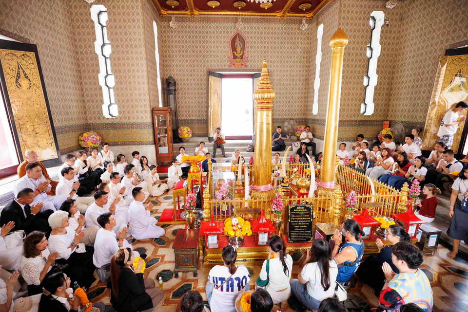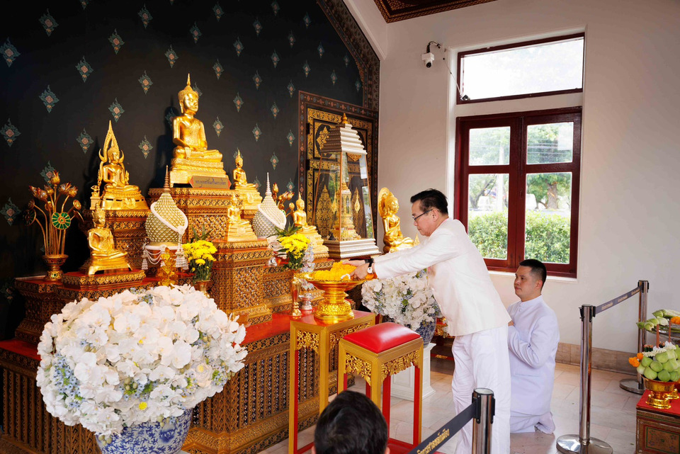 ในโอกาสนี้ คณะได้เข้าน้อมกราบสักการะพระพุทธมหามณีรัตนปฏิมากร (พระแก้วมรกต) ณ วัดพระศรีรัตนศาสดาราม ซึ่งเป็นพระพุทธรูปคู่บ้านคู่เมืองของไทย เนื่องในวันฤกษ์อันเป็นมงคล จากนั้นได้ประกอบพิธีบวงสรวง ณ ศาลหลักเมืองกรุงเทพมหานคร ตามแบบพิธีพราหมณ์ เพื่อความเป็นสิริมงคลและความเจริญรุ่งเรืองของบ้านเมือง