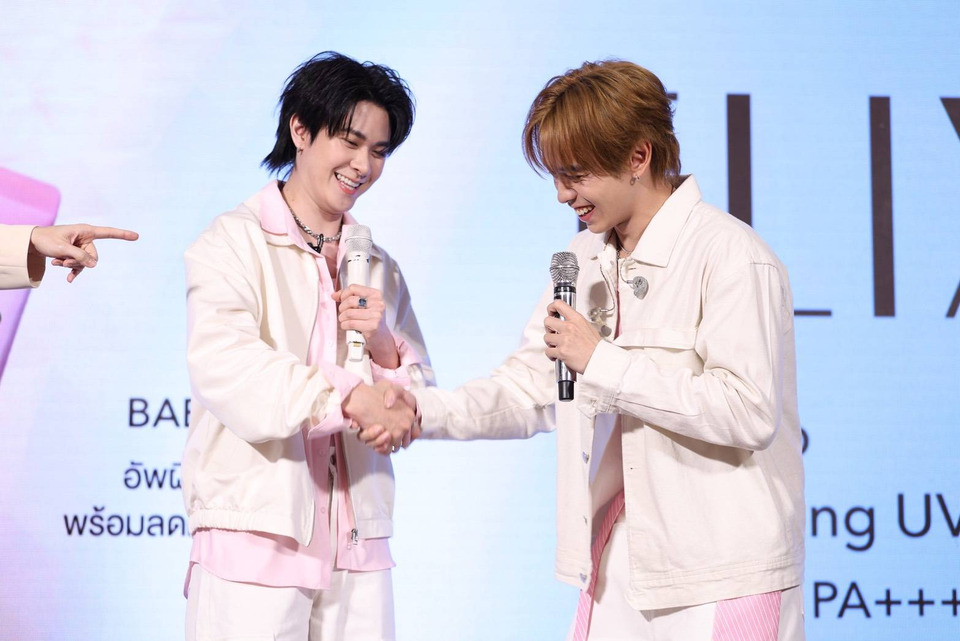 ด้าน 2 หนุ่มสุดฮอท แจ็คกี้-จักริน และ เติร์ด-ลภัส เผยว่า ดีใจมากที่ได้มาร่วมงานเปิดตัวผลิตภัณฑ์กันแดดของแบรนด์ ELIXIRเพราะได้ยินชื่อเสียงของแบรนด์นี้มานานแล้ว คิดว่ากันแดดโทนอัพเฉดสีใหม่ของ ELIXIRช่วยตอบโจทย์ไลฟ์สไตล์เป็นอย่างมาก เพราะนอกจากจะช่วยปกป้องผิวจากแดดแล้ว ยังเป็นบำรุงด้วยไปในตัว ที่สำคัญคือทาแล้วผิวดูเป็นธรรมมชาติมาก อยากให้แฟนๆ ทุกคนได้ลอง