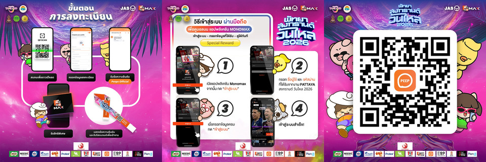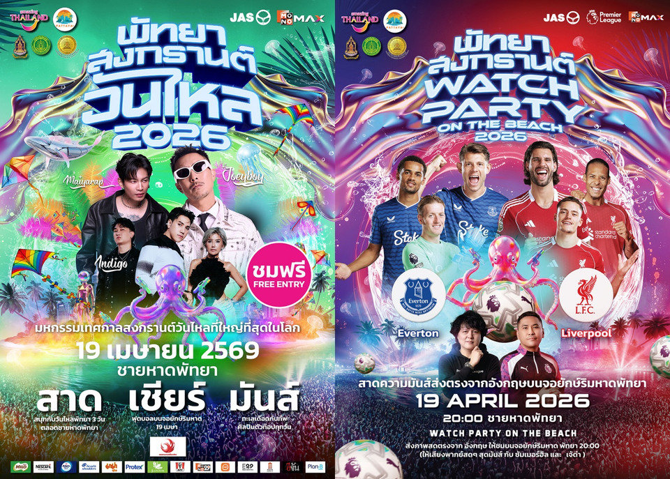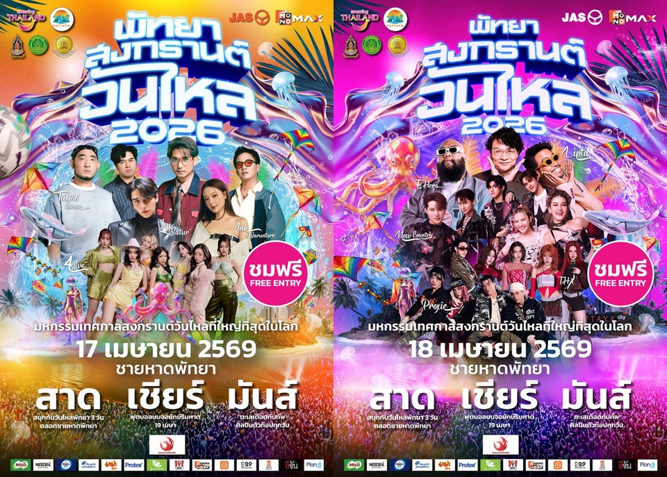 เตรียมพบกับงานสงกรานต์วันไหลริมทะเลสุดยิ่งใหญ่แห่งเดียวในโลก พร้อมมอบประสบการณ์ความบันเทิงครบวงจร ทั้งเล่นน้ำ เชียร์บอล และชมคอนเสิร์ต ภายใต้ความร่วมมือของ การท่องเที่ยวแห่งประเทศไทย สำนักงานพัทยา, เมืองพัทยา และ สำนักงานวัฒนธรรมจังหวัดชลบุรี ร่วมกับ MONOMAX (โมโนแม็กซ์) จัดงาน “พัทยา สงกรานต์ วันไหล 2026” เพื่อตอกย้ำภาพลักษณ์เทศกาลระดับแลนด์มาร์คของเมืองพัทยาในสายตานักท่องเที่ยวทั่วโลก