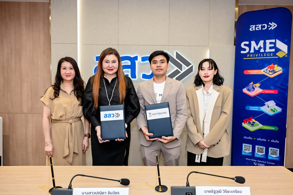 วันที่ 9 เมษายน 2569 สำนักงานส่งเสริมวิสาหกิจขนาดกลางและขนาดย่อม (สสว.) ประกาศความร่วมมือครั้งสำคัญกับ บริษัท แฟคทส์เบลนด์ จำกัด ในการลงนามบันทึกข้อตกลงความร่วมมือ (MOU) เพื่อให้สิทธิประโยชน์แก่ผู้ประกอบการที่ลงทะเบียน SME ผู้รับบริการภาครัฐ เพื่อสนับสนุนการเข้าถึงเทคโนโลยีการบริหารจัดการธุรกิจที่มีประสิทธิภาพ และช่วยลดต้นทุนให้แก่ผู้ประกอบการวิสาหกิจขนาดกลางและขนาดย่อม (SME) รวมถึงวิสาหกิจรายย่อยทั่วประเทศ