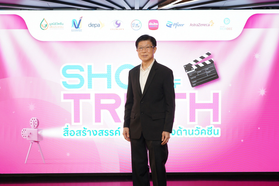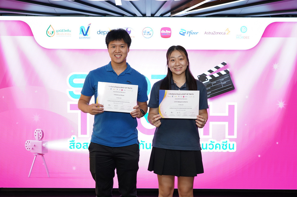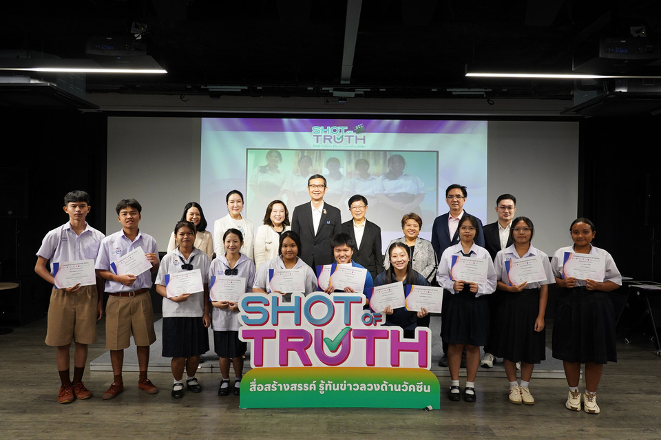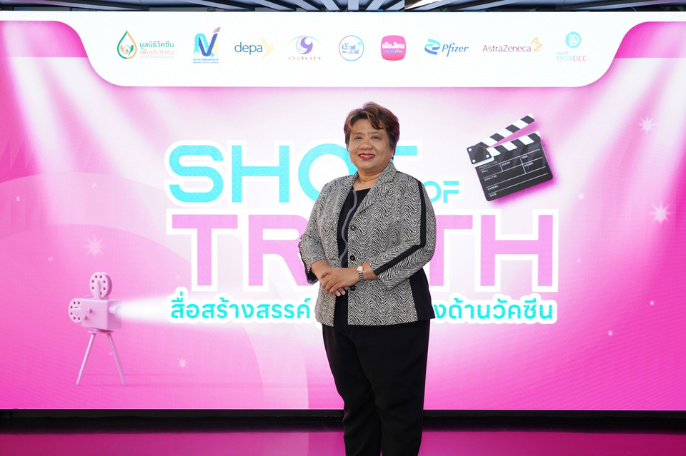 มูลนิธิวัคซีนเพื่อประชาชน ร่วมกับ สถาบันวัคซีนแห่งชาติ สำนักงานส่งเสริมเศรษฐกิจดิจิทัล (depa) ศูนย์ชัวร์ก่อนแชร์ สำนักข่าวไทย อสมท เมืองไทยประกันชีวิต ไฟเซอร์ (ประเทศไทย) จำกัด แอสตร้าเซนเนก้า (ประเทศไทย) และ MorDee (หมอดี) แพลตฟอร์มบริการสุขภาพอัจฉริยะ โดย ทรู ดิจิทัล กรุ๊ป จัดพิธีประกาศผลและมอบรางวัลโครงการ “Shot of Truth สื่อสร้างสรรค์ รู้ทันข่าวลวงด้านวัคซีน” เพื่อยกย่องผลงานของนักเรียน นักศึกษา และคนรุ่นใหม่ที่ร่วมผลิตคลิปวิดีโอสั้น ถ่ายทอดข้อมูลที่ถูกต้องเกี่ยวกับวัคซีนและโรคระบบทางเดินหายใจที่สามารถป้องกันได้ด้วยวัคซีน สร้างภูมิคุ้มกันข่าวลวง และส่งเสริมการใช้สื่อออนไลน์อย่างสร้างสรรค์ในสังคมไทย