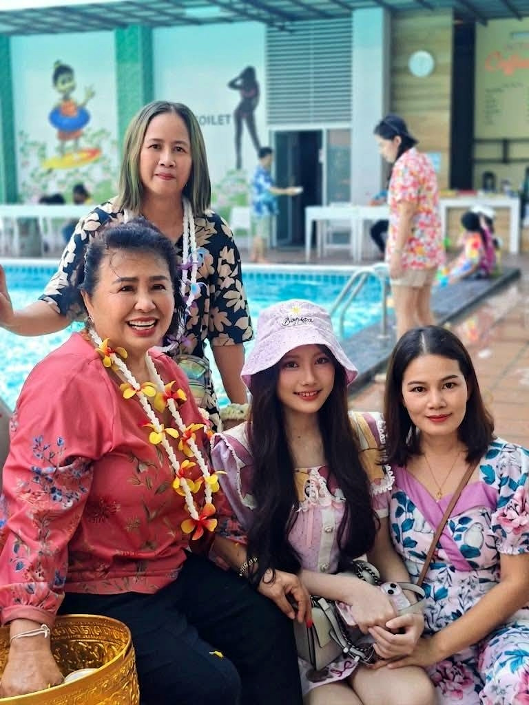 บรรยากาศภายในงานเต็มไปด้วยสีสันสดใส เมื่อเหล่าบรรดานักแสดงจากซีรีส์ชื่อดัง "เรื่องเล่าอาจารย์ยอด" พร้อมด้วยทีมงานเบื้องหลัง และเหล่านักเรียนการแสดงจาก จ๊ะทิงจา อาคาเดมี (Jatingja Academy) ทุกรุ่น ต่างพร้อมใจกันแต่งกายด้วย "เสื้อลายดอก" หลากสีสัน มารวมตัวกันอย่างพร้อมเพรียงเพื่อร่วมรดน้ำขอพรผู้ใหญ่และเล่นน้ำสงกรานต์กันอย่างสนุกสนาน เปลี่ยนพื้นที่บริเวณสระว่ายน้ำให้กลายเป็นพื้นที่แห่งความสุข รอยยิ้ม และเสียงหัวเราะ สะท้อนถึงสายสัมพันธ์อันแน่นแฟ้นภายใต้ชายคา "ครอบครัวจ๊ะทิงจา" ที่อยู่ร่วมกันด้วยความรักและความปรารถนาดี