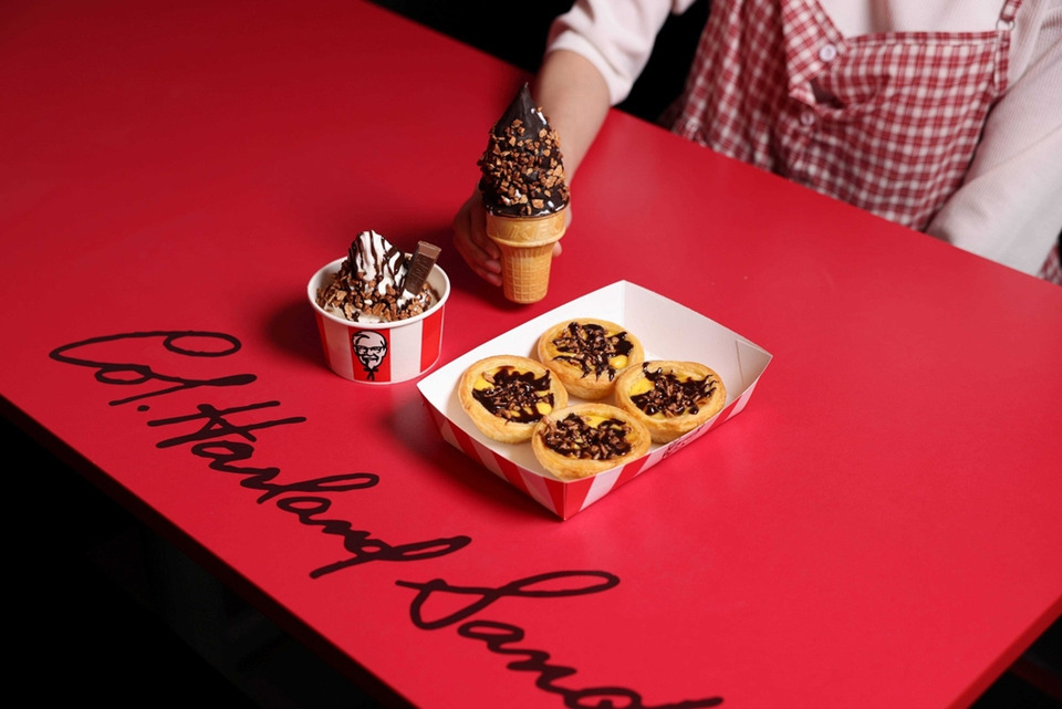 - ทาร์ตไข่คิทแคทโอเวอร์โหลด ทาร์ตอบกรอบ ไส้ไข่หอมหวานละมุนลิ้น สอดไส้ครีมคิทแคทเยิ้มๆ โรยครัมเบิลคิทแคท และท็อปด้วยซอสคิทแคทอีกชั้น ฟินขั้นสุดในทุกคำที่กัด ราคาชิ้นละ 35 บาท หรือ 4 ชิ้น ราคา 129 บาท ที่ร้าน KFC ทุกสาขาทั่วประเทศ